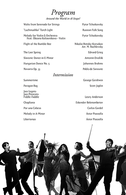 Chamber Orchestra Kremlin. How could one not use the fun, whimsical photos of the band members, set against Misha Rachlevsky on the cover, looking appropriately serious and Russian? Originally, the program was going to be in color, but there wasn't any place where color would not feel artifically inserted.