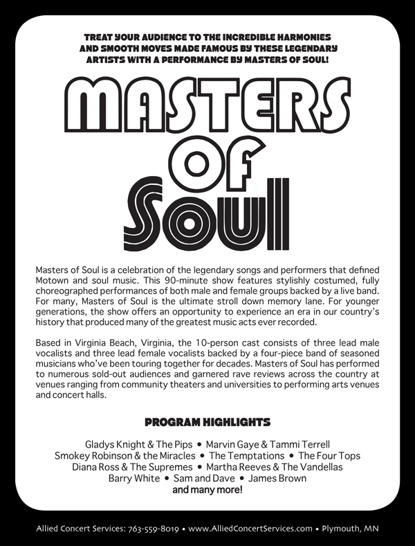 Masters of Soul. Their logo has to be modeled on the old Soul Train television series. So as such, I tried to make this as 1970s as I could. I decided to keep the backside just black and white, as if it were a newspaper clipping from the time, advertising their next performance at a discotheque or nightclub.