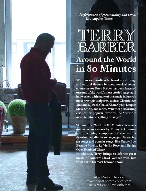 Terry Barber. This countertenor actually has a LOT of high-res photos. The problem is that everyone else who's made a poster or program used them too! I wanted something unique, so I pulled these images from a YouTube clip! My contact at Allied called it "edgy," and almost immediately approved it! It would easily be one of the flyers I'm really proud of, if it weren't for Terry's people objecting to it not being quite on-brand with other materials I didn't have access to...
