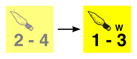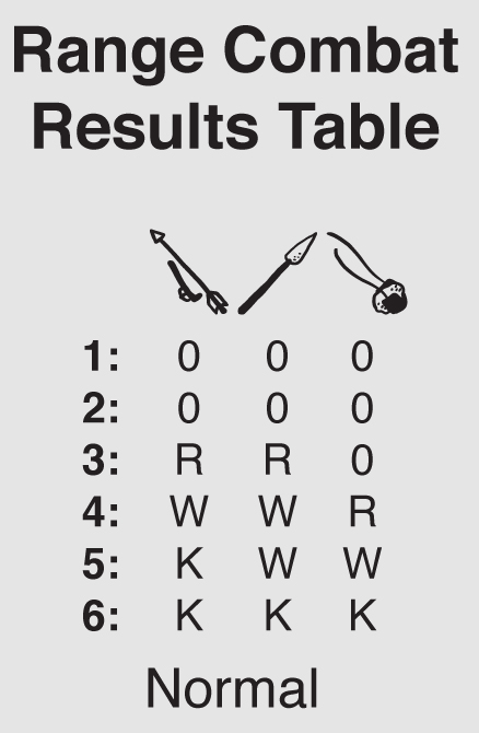 A ranged weapon, when thrown, uses a separate CRT, based on that units’ Range Number, which is found on the upper right corner of that units’ token.