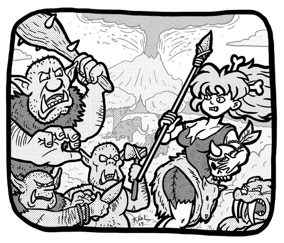 Orc-Magnon is a war game that simulates the (fictional?) battles between pre-contemporary humans and orcs. It is free to download, modify, and play. It requires a single 6-sided die, two sheets of paper, and a cunning mind willing to out-think your opponant!
