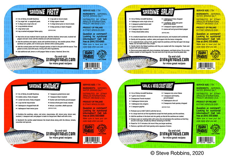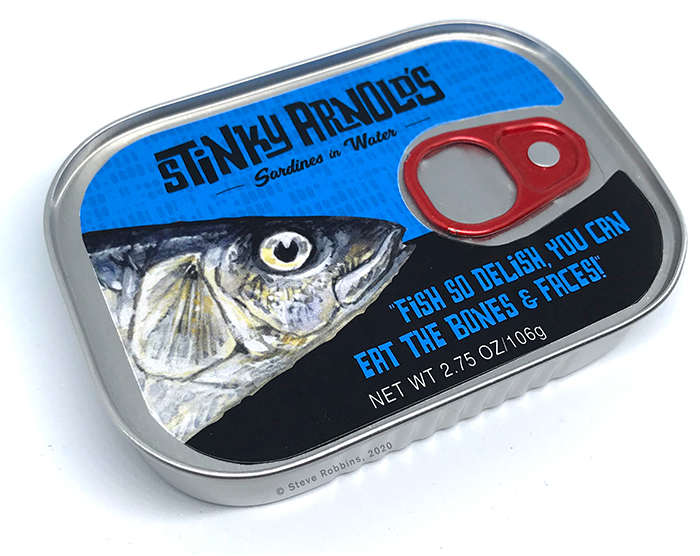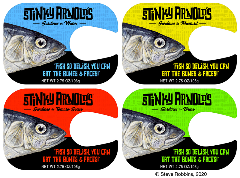 As I stared at the tins I bought, I thought, genuinely, "could I make this packaging more appealing?" and "what would be a disgusting name for brined fish?" I'm not sure, but it was a fun little challenge!