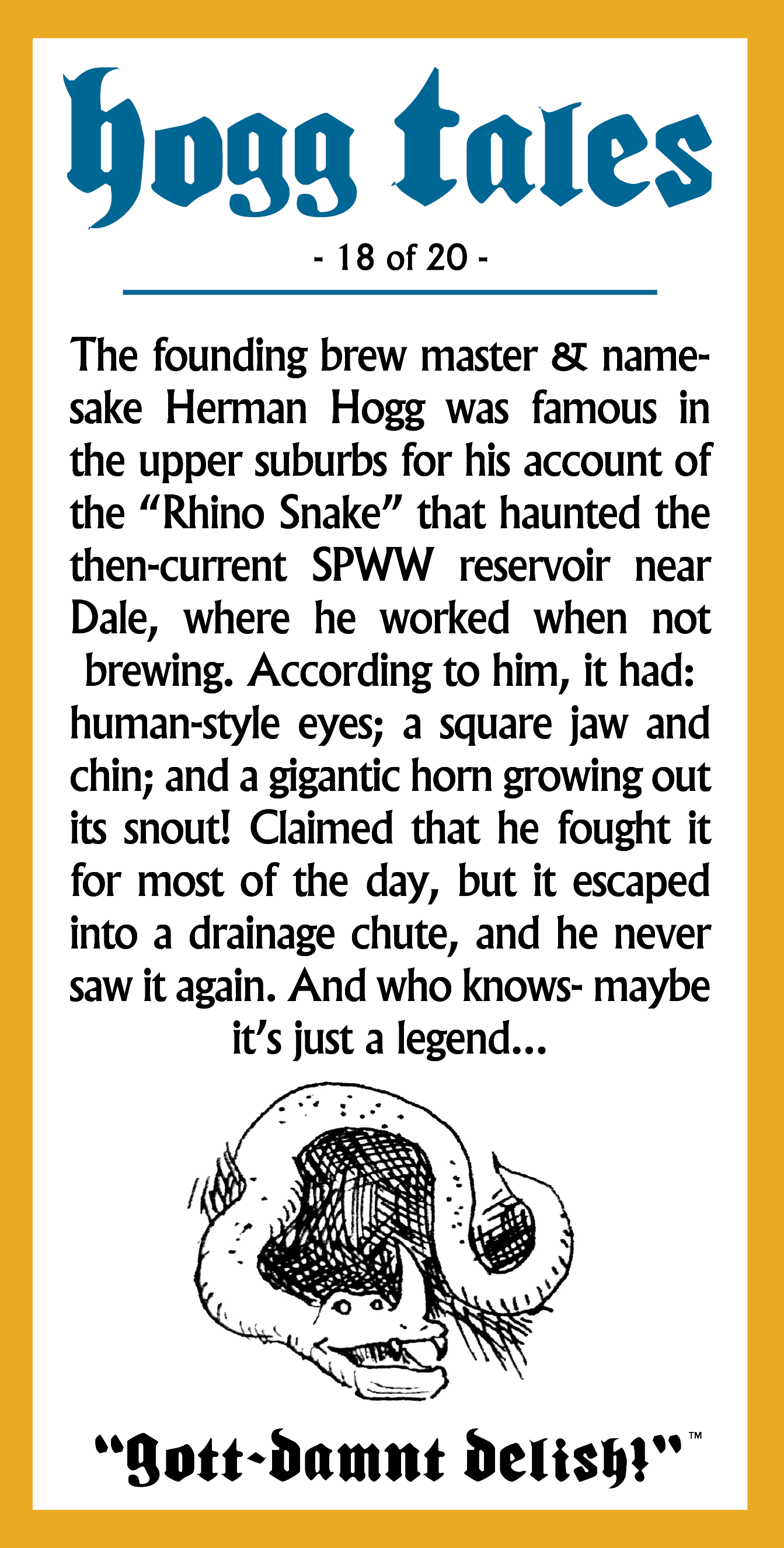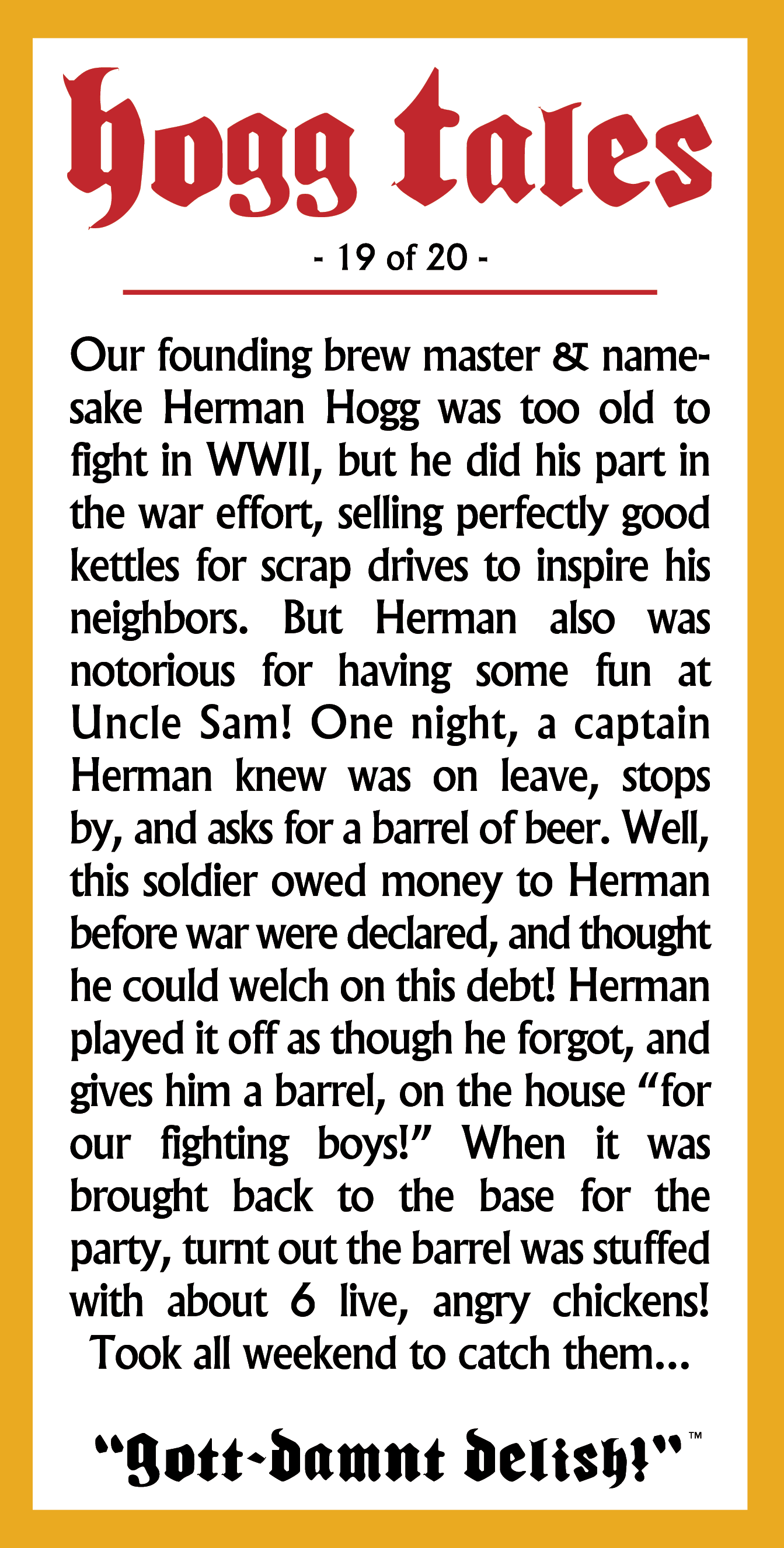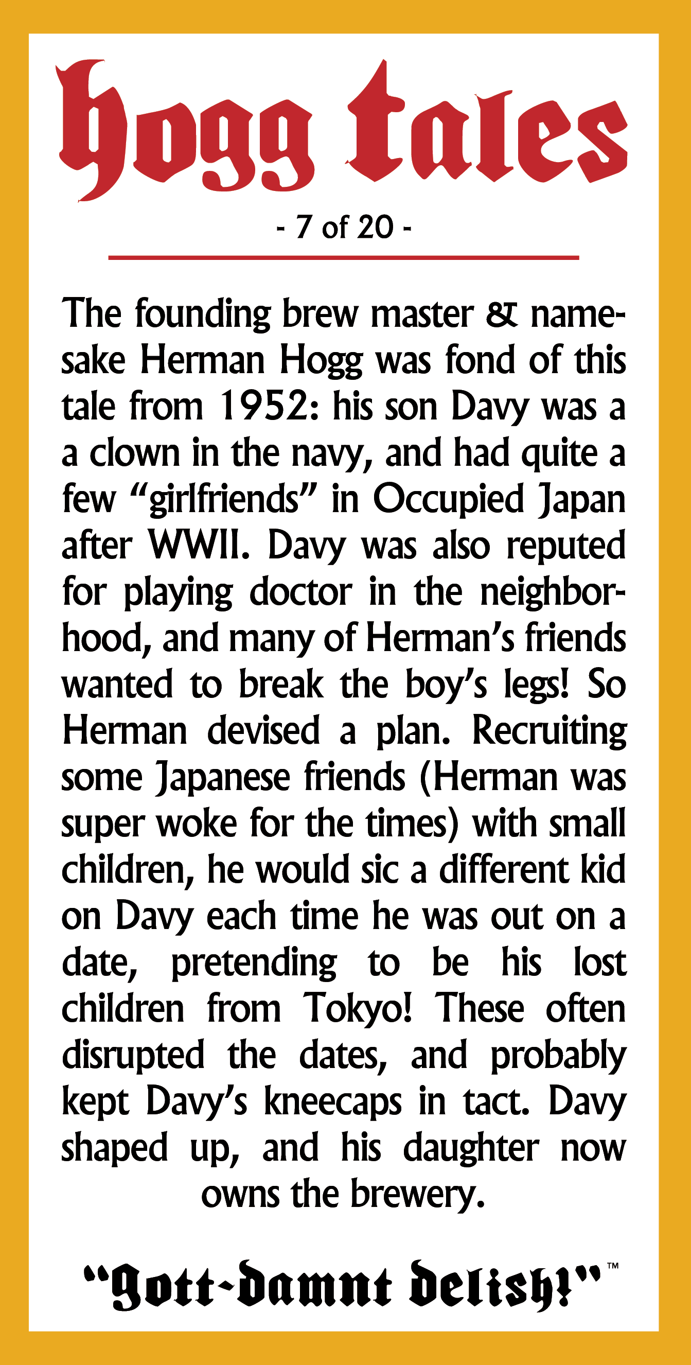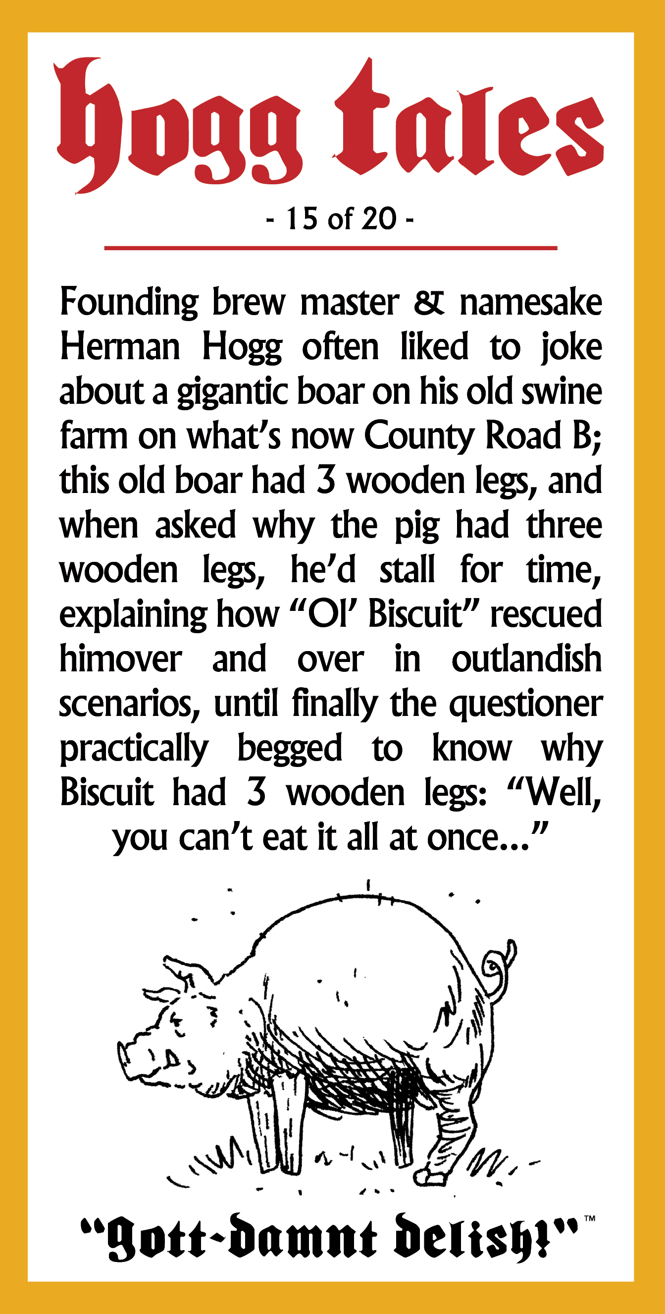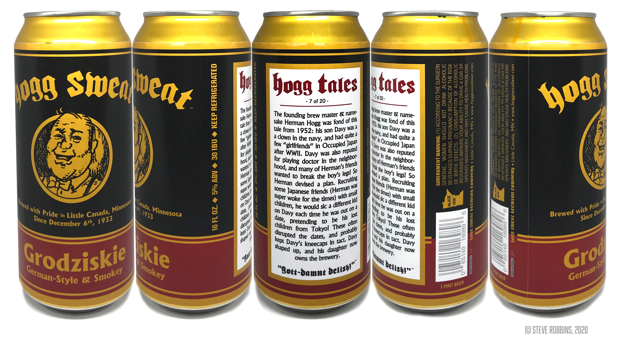 As a fun little extra, each can includes a little anecdote relating to the fictional founder of the brewery, Herman Hogg, a seemingly ageless man of great homespun humor, and a sweaty forehead: