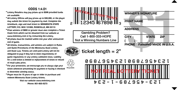 Back of lottery ticket has been replicated without permission from the Minnesota State Lottery for this pastiche