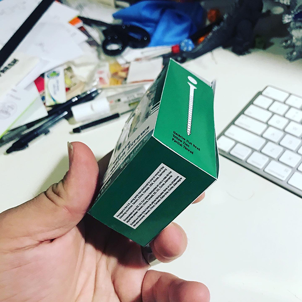 Photos of the physical mock-up I made of the screws box.